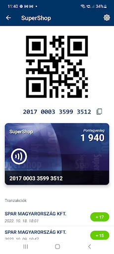 Az NFC funkció a telefonba költözteti plasztik SuperShop kártyáját, így kényelmesen kezelheti azt a vásárlások során pont felírásra és pontbeváltásra. Bármikor ellenőrizheti itt SuperShop egyenlegét is.