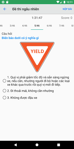 + Bài thi lý thuyết sẽ có tổng cộng 46 câu hỏi, bạn sẽ đậu nếu bạn trả lời đúng ít nhất 39 câu;