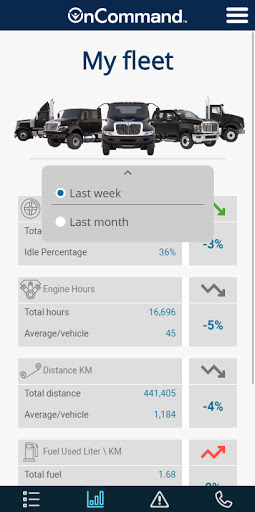 -Resumen de operación de la unidad.(Km recorridos, litros consumidos, rendimiento, tiempo de manejo, ralentí)