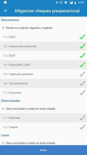 Tendrán la posibilidad de diligenciar digitalmente el chequeo pre-operacional con los elementos exigidos según el plan estratégico de seguridad vial.