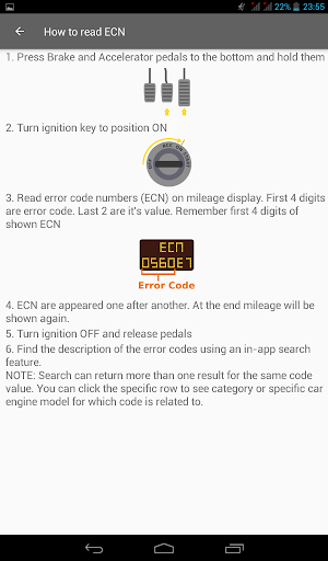 The application is a pocket tool to find description of error codes (ECN) shown by Opel Astra H on-board computer when problem arise.