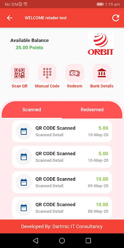 Mechanics and Retailers can Redeem their points earned by scanning of QR Codes from the application under the Mechanic/Retailer loyalty program scheme run by Orbit Bearings India Pvt. Ltd.