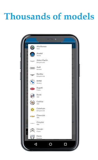 Makes: Alfa Romeo, Anadol, Aston Martin, Audi, Bentley, Bmw, Bugatti, Buick, Cadillac, Caterham,Chevrolet, Citroen, Dacia, Daewoo, Daihatsu, Dodge, Ds, Ferrari, Fiat, Ford, Geely, Honda, Hyundai, Ikco, Infiniti, Isuzi, Jaguar, Kia, Lada, Lamborghini, Lancia, Land Rover, Lexus, Maserati, Mercedes Benz, Mini, Mitsubishi, Nissan, Opel, Peugeot, Porsche, Renault, Rolls Royce, Skoda, Smart, Subaru, Suziki, Tesla, Toyota, Volkswagen, Volvo