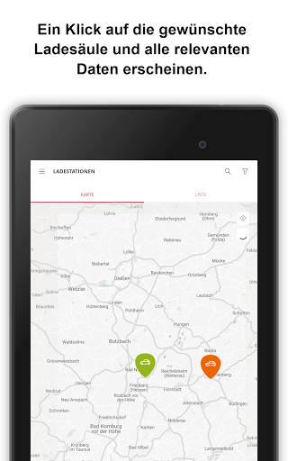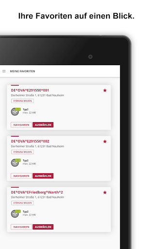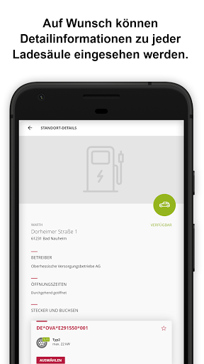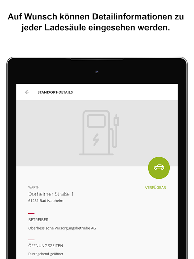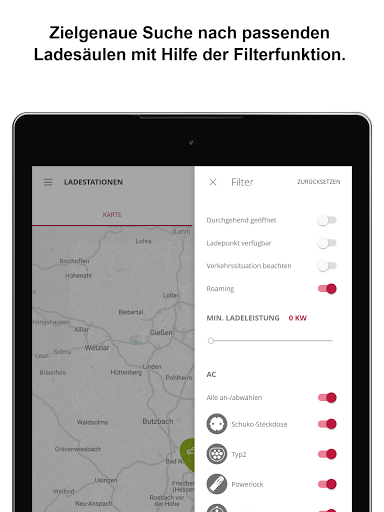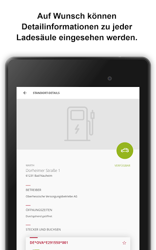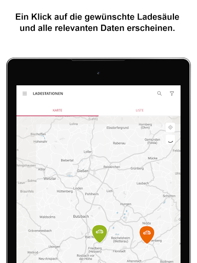 Live-Anzeige aller verfügbaren OVAG-Ladestationen sowie Elektrotankstellen der angeschlossenen Roaming-Partner
