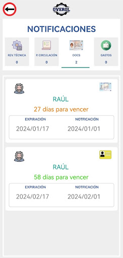 📅 Notificaciones de Expiración: Olvídate de vencimientos con alertas para revisiones técnicas y permisos de circulación.