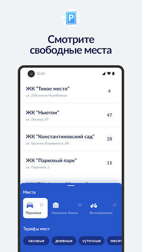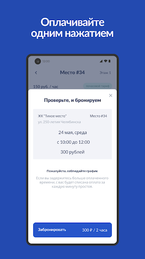 • Интуитивно понятный современный интерфейс, позволяющий найти и забронировать парковку за несколько минут