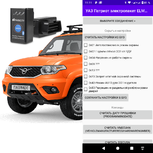 Управление и настройка электропакета УАЗ Патриот через OBD II ELM327 BLUETOOTH. Обратите внимание на более полную версию: https://play.google.com/store/apps/details?id=comson.uazpatriotdiag Приложение позволяет выбрать скрытые настройки: –...