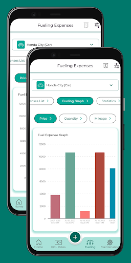 – Graphical Representation: View graphical representations of your vehicle’s expenses by price, quantity, maintenance, and mileage.