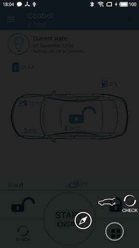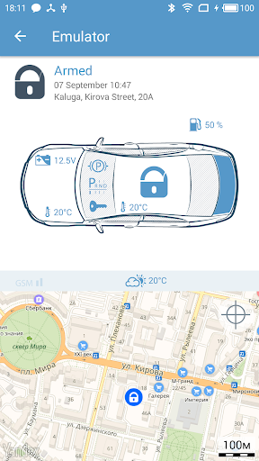 – Monitoring the current state of your car: statuses of all security zones and sensors, current fuel level (it depends on connections), engine temperature, car interior temperature, outside temperature (additional sensor is required), current car location (for systems with a GPS/GLONASS-receiver).