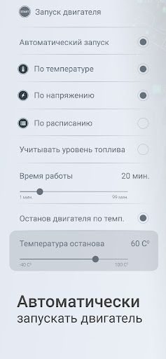 – Online system settings adjustment, sensors sensitivity settings, changing a schedule of automatic engine starts.