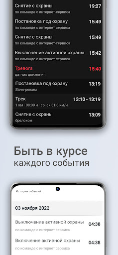 – History of events with coordinates, time and states of all security zones, sensors and other service information.