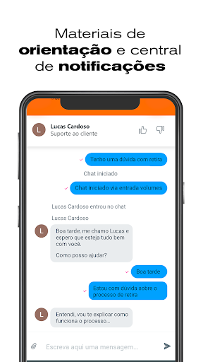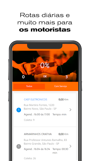 O app mostra suas rotas diárias, orientações, notificações, identificação (crachá) e ocorrências.