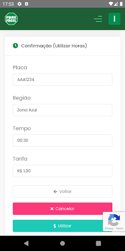 Aplicativo para utilizar os créditos de zona azul nas cidades atendidas pela Pare Fácil Zona Azul.