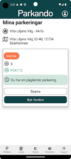 I appen aktiverar och byter du enkelt vilket fordon som ska ha tillstånd att nyttja ditt parkeringsavtal. Parkerar du på ett företagsavtal ser du hur många tillstånd som finns tillgängliga och kan enkelt starta eller stoppa en parkering.