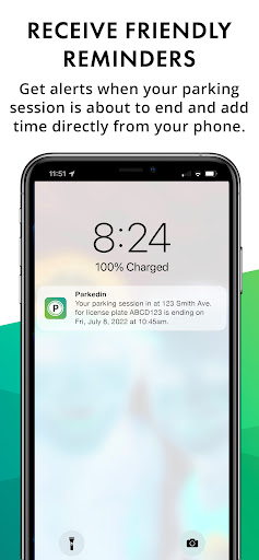 Not only can you pay for and reserve your parking, but the Parkedin™ app will also notify you 5 minutes before your parking time expires and let you add time if required. It will also notify you of upcoming reservations and let you extend reservations.