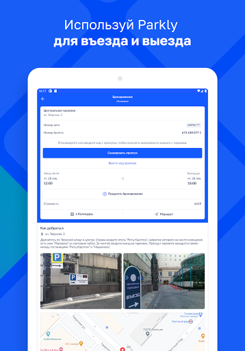 Больше не нужно ездить кругами по узким переулкам Москвы и Питера в поисках свободного места. В Parkly вы можете заранее забронировать машиноместо на удобное для вас время в охраняемых парковках. Оплатить парковку в мобильном приложении, перейти из бронирования в навигатор и использовать приложение для въезда и выезда.