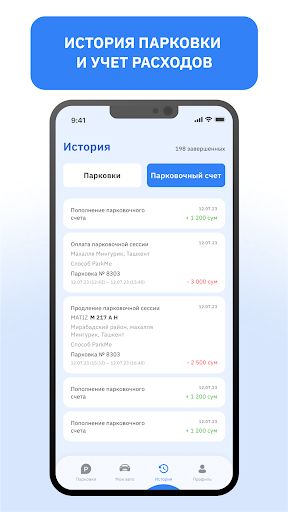 4. История парковки и учет расходов: Легко отслеживайте историю вашей парковки и расходы на нее. Следите за своими привычками парковки и расходами в течение времени для более эффективного финансового планирования.