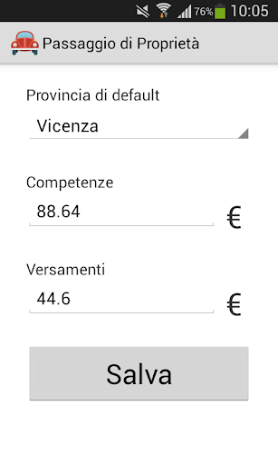 L’applicazione serve per calcolare il costo di un passaggio di proprietà di un autoveicolo.
