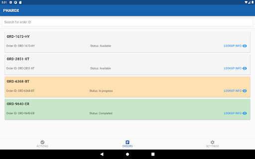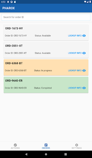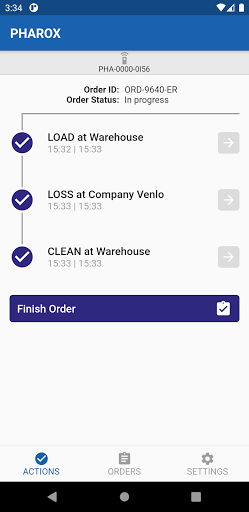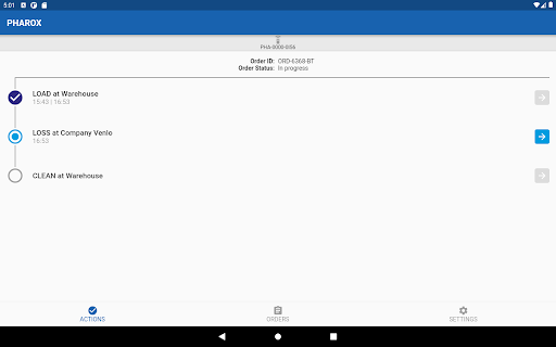 With PHAROX Field app, users can manage their progress in a logistic process, such as ‘orders’ or ‘workflows’.