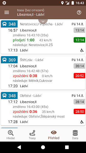 Pokud nejsou data o poloze, tak se zobrazuje poloha dle jízdního řádu.