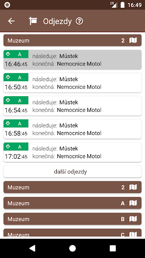 – zobrazení všech nejbližších odjezdů ze zastávky