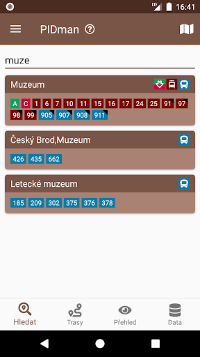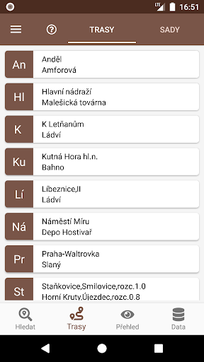 Není účelem aplikace vyhledávat trasy s přestupy (na to je spousta jiných možností). Primárním účelem je sledovat, kdy mi jede spoj pro jednu přímou trasu. Může se stát, že mám možnost použít více přímých tras – potom lze použít sadu, která sdružuje více tras.
