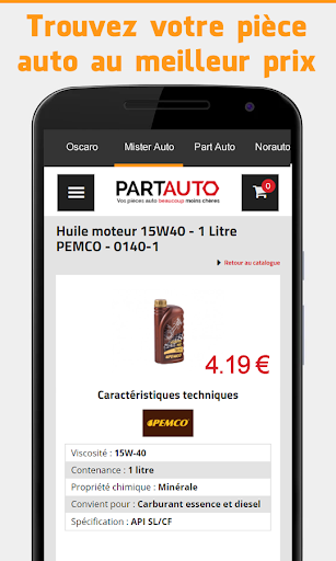 Trouvez votre pièce auto au meilleur prix et parmi les meilleures marques. L’application propose c’est un assortiment gigantesque de pièces détachées et de rechange pour votre voiture, avec plus de 10 millions d’articles provenant d’une multitude de boutique.