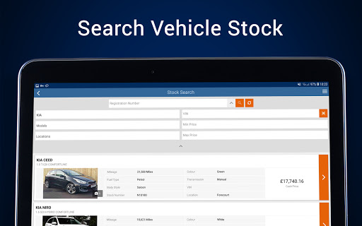 – A user-friendly stock search feature provides full visibility of vehicle details and any related documentation for the sales team. This includes a full gallery of images and videos, instantly available from the app – useful for quickly accessing vehicle information at the point-of-sale.