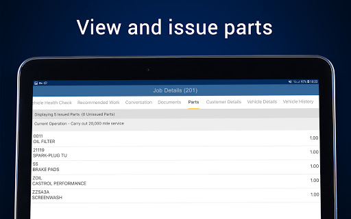 – You can view parts that have been prepared for the job or even issue them yourself by selecting the part or scanning a bar code.