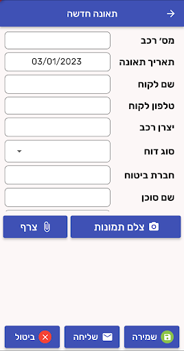 אפלקציה לניהול תמונות של תאונות אשר מאפשרת פתיחת תיק עבור כל תאונה חדשה, שמירת פרטי תאונה ופרטי רכב, צילום תמונות של הנזק באמצעות המצלמה, צירוף תמונות מהטלפון לתיק של התאונה, שליחת פרטים + תמונות של תאונה ספציפית באמצעות המייל/ הוואטסאפ.