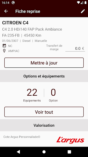 o Accéder à toutes les valeurs Argus (Cote Argus personnalisée®, Valeur Argus Annonces®, Valeur Argus Transactions® BtoB et BtoC, Délai Argus Rotation®).