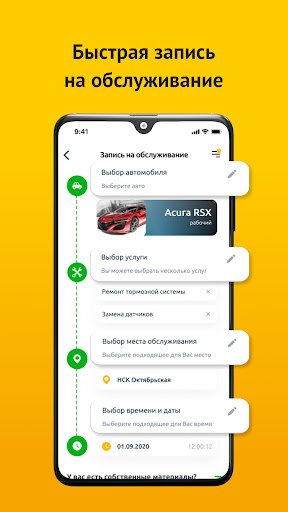 Просто выберите нужную услугу, укажите удобную дату, время и место обслуживания, и приезжайте в выбранный сервис в назначенный день! Приложение напомнит вам о записи заранее.