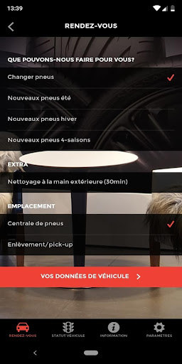 Avec l’app Pneu Vanhamme, vous pouvez prendre rendez-vous en ligne et voir quand votre véhicule est terminé.
