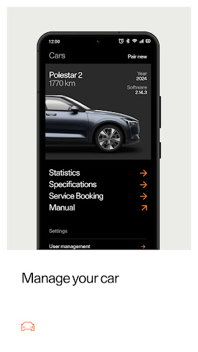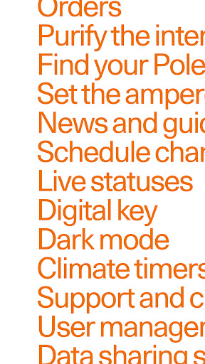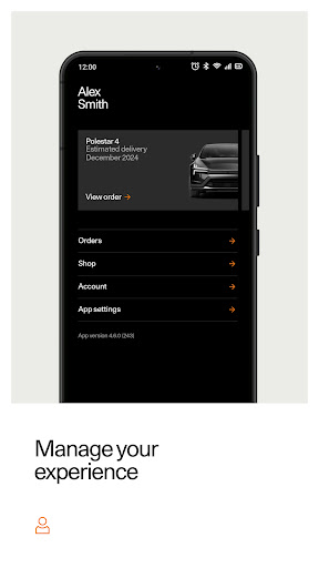 View and manage your orders and Polestar ID, visit the car configurator and extras shop, and adjust app settings.