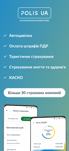 У додатку Ви можете розрахувати, вибрати і оформити менш ніж за 2 хвилини потрібну страховку для вашого автомобіля. Додаток підбирає найвигідніші пропозиції від популярних українських страхових компаній. Ви можете придбати обов’язкове страхування відповідальності автовласників (автоцивілка). Автостраховка діє цілий рік, до моменту її переоформлення. Підсилюйте свій фінансовий захист полісом додаткового покриття на випадок аварії або травми в результаті ДТП.