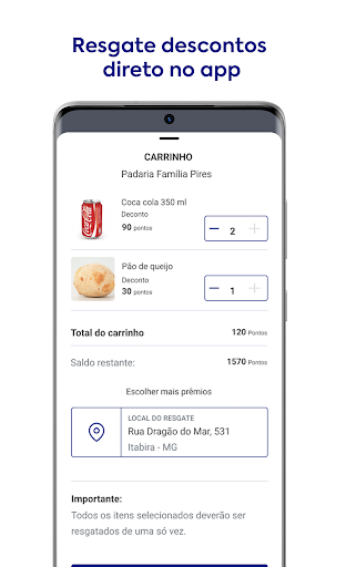 Resgate direto pelo app de forma fácil e rápida. Selecione o prêmio, a quantidade e emita o voucher. Depois é só apresentá-lo no posto para retirar o prêmio.