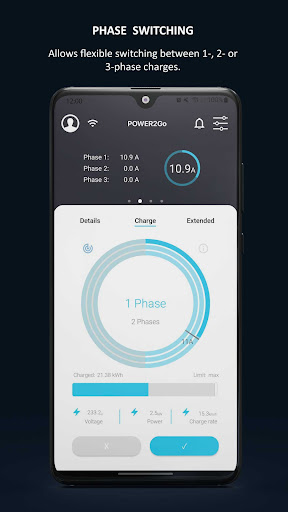 With the POWER2Go App you can view various settings for your POWER2Go, interesting statistics and information about your charging process. The app gives you access to advanced features such as photovoltaic led charging, automated charging reports, and the ability to control charging power and charging current. With the POWER2Go app you always have a complete overview of your charging process: different parameters such as voltage, current, power and energy are visualized and you can change the current in up to 0,1A steps while charging. Charging costs, average energy consumption, range, CO2 savings and other useful information are displayed and recorded.