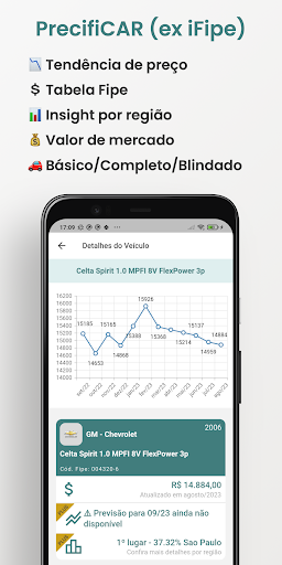 Com o PrecifiCAR você poderá precificar carros, motos e caminhões baseado na Tabela Fipe e preços praticados nos classificados e bancos separados por modelo básico, completo e blindados.