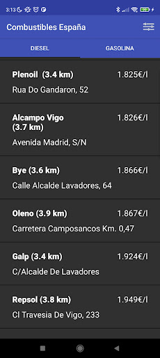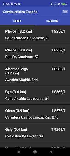 Comparador de precios de combustible de España por proximidad