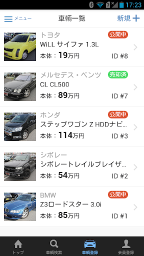 売却したい車輌の登録及び購入したい車輌の詳細を表示するには会員登録が必要です。