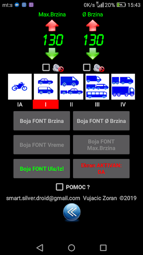 sabira i moze da se salje na eMail, Viber, SMS i sl, kategorija vozila se unosi iz opcije PODESAVANJA.