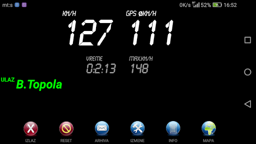 Aplikacija je info karaktera i bitan je kvalitet GPS signala (Kada je los prijem GPSa moze doci do odstupanja), greske su moguce zato prilagodite brzinu ogranicenjima i uslovima na putu.