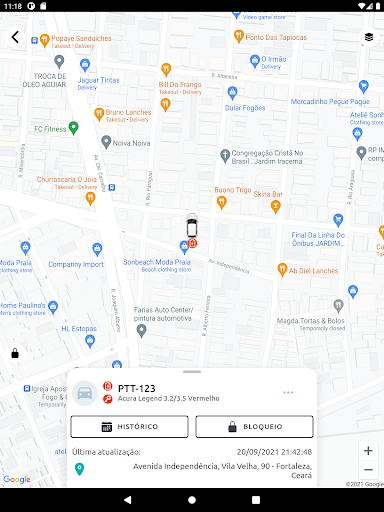– Histórico detalhado por dia com gráfico de ignição e velocidade