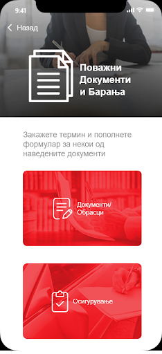 Документи и барања овозможува креирање на барање за изработка на одреден документ на пример меѓународна дозвола или дозвола за управување на туѓо моторно возило итн. И во овој дел корисникот има можност да одбере локација и време од каде и кога ќе го подигне посакуваниот документ.