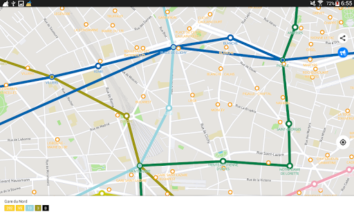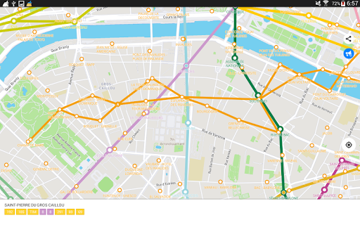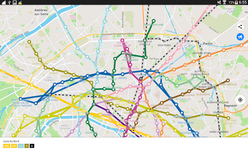1) On the screen of your device you will see the whole Paris’s public transport scheme, and the more scale is choosen the more details are given.