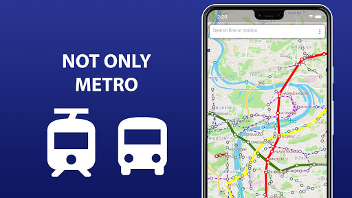 2) The map of Prague shows not only metro lines, but tram and bus routes as well. Stations of possible metro-tram-bus transfers are grouped.