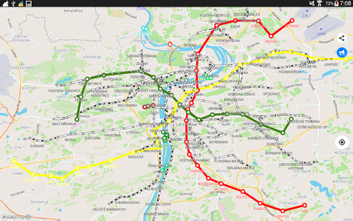 1) On the screen of your device you will see the whole Prague’s public transport scheme, and the more scale is choosen the more details are given.