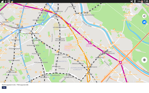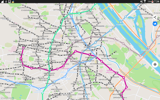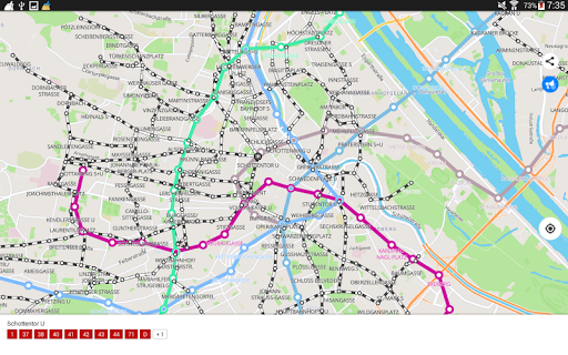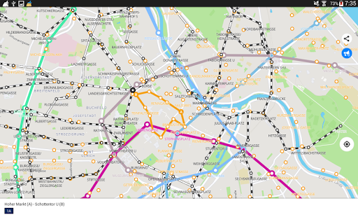1) On the screen of your device you will see the whole Vienna’s public transport scheme, and the more scale is choosen the more details are given.