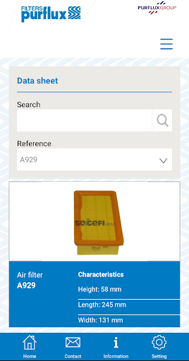 Simple to consult, the PURFLUX application makes it easy to identify the appropriate reference.