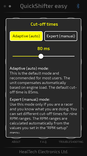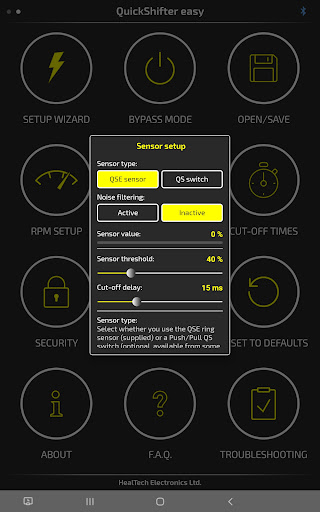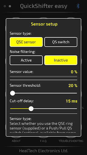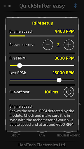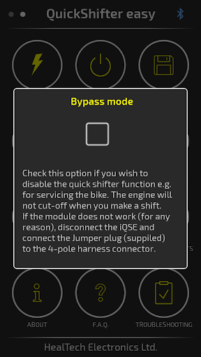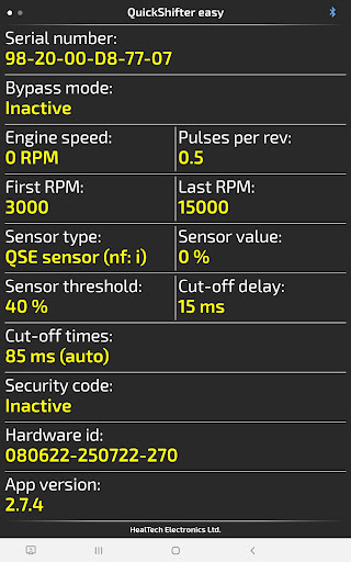 Use this application to control your QuickShifter easy (iQSE) module from HealTech through your Android device via Bluetooth.